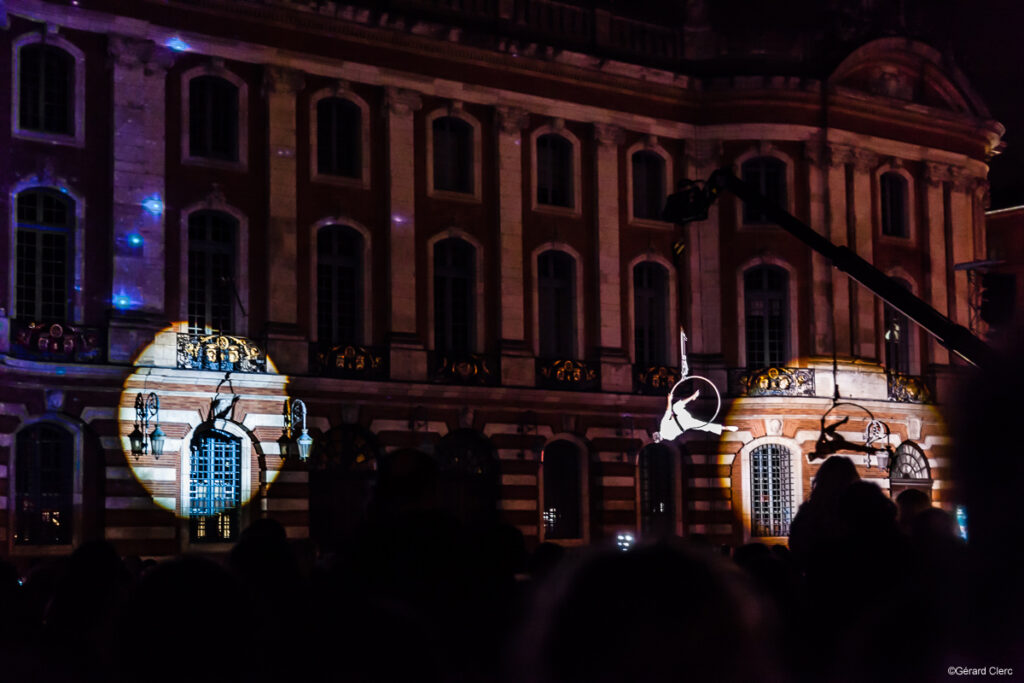 Projection spectacle sur bâtiment choisi sous forme de dialogue entre arts vivants et vidéo mapping.