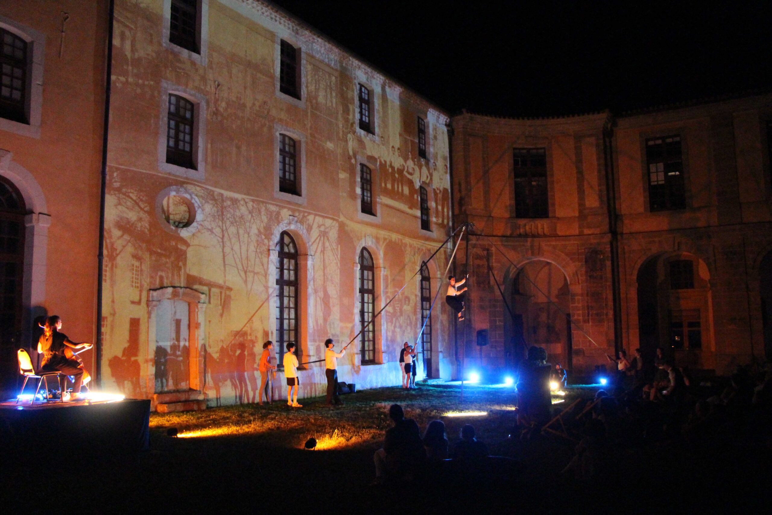 Après une période de recherches et de collecte de matériaux sur une thématique donnée et autour d’une architecture de bâtiment (support de projection), la Cie Millimétrée va s’atteler à créer un film à la croisée entre histoire poétisée, documentaire et mapping. Le spectacle proposé est alors un échange entre ce film et des artistes qui viendront ponctuer la narration par une présence en chair et en os.